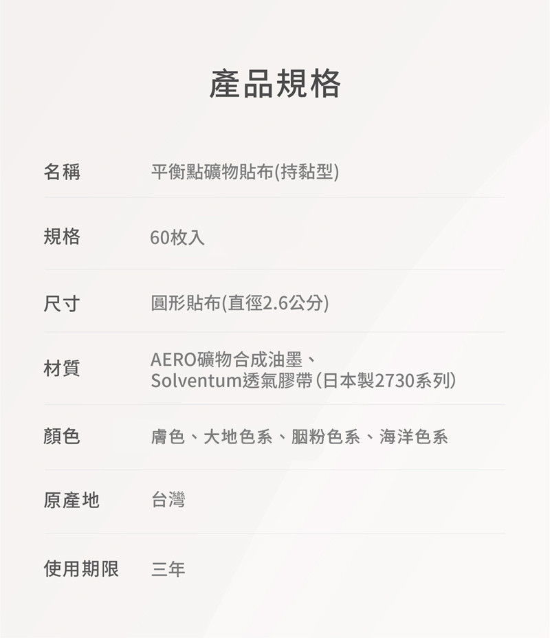 ■ 主商品:平衡點礦物貼布 (持黏型)
