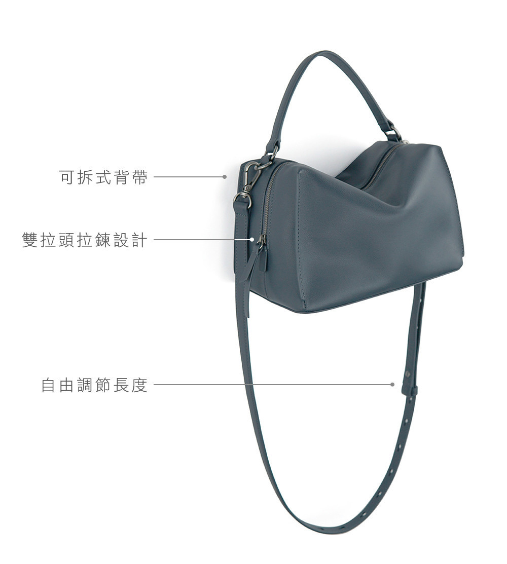 含外袋雙拉頭拉鍊、內袋拉鍊,軟包硬底的設計,可手提、側背與斜背,放長夾也沒問題,適合上班或是日常使用。