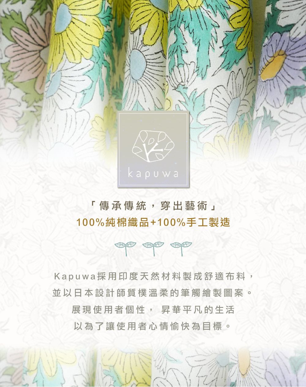 Kapuwa 商品採用手工織造布料與木版印花技法,因此可能出現: