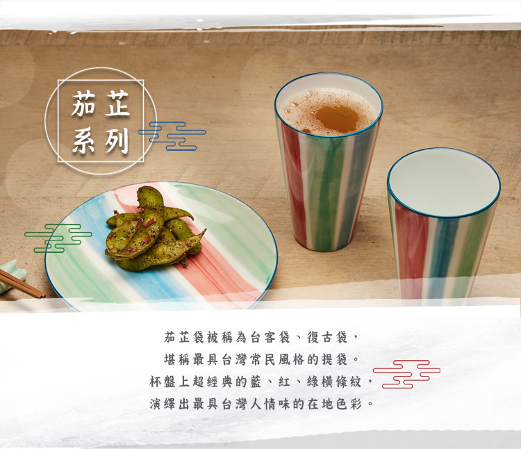 茄芷袋最經典的紅藍綠配色,用手工彩繪